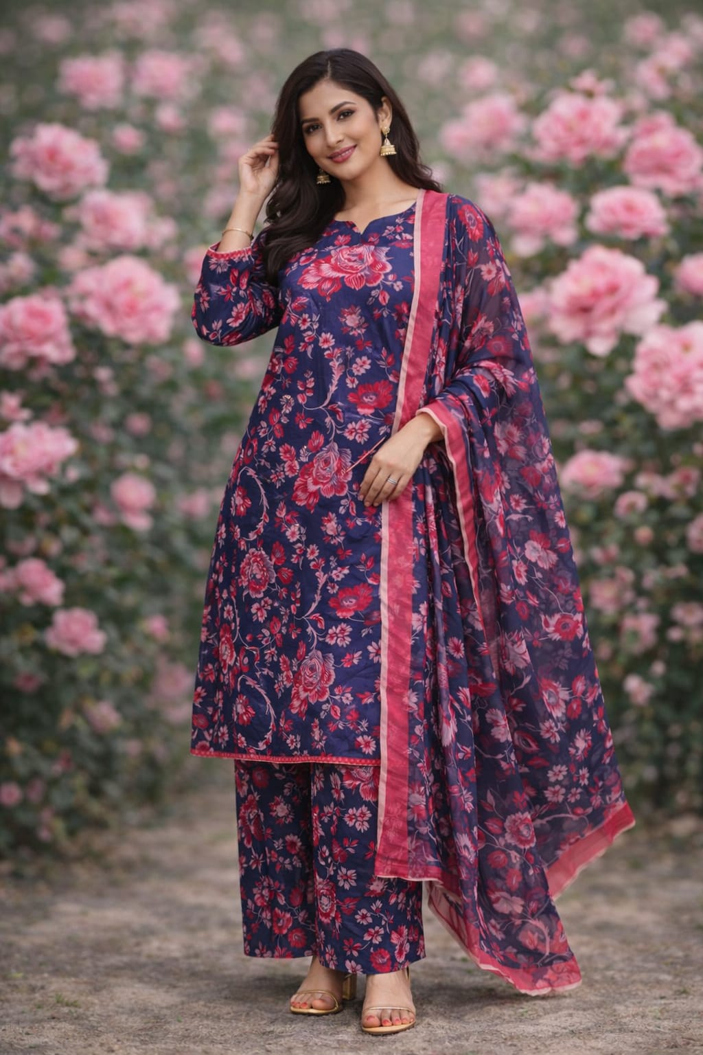 Bring charm and elegance to your wardrobe with the Pink Rose 3 Piece Suit by Femmi Prets. Crafted from premium Bana Dora lawn fabric, this stitched outfit provides a soft feel, elegant fall, and durable quality — perfect for daily wear, casual outings, office, and family gatherings.